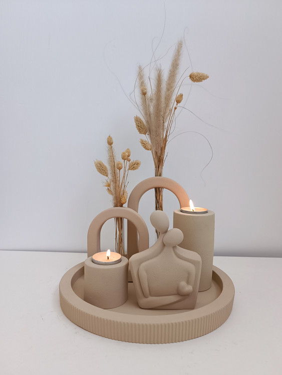 این ست به انتخاب عالی برای روی میز ناهارخوری ، میز جلو مبلی ، میز کار ، میز تلویزیون ،شلف ، پا تختی و هر فضای خالی از خونه ی شماست. انقدر لوکس و پینترستی که با هر فضا و رنگی هم ست میشه. قطر سینی 27 سانت