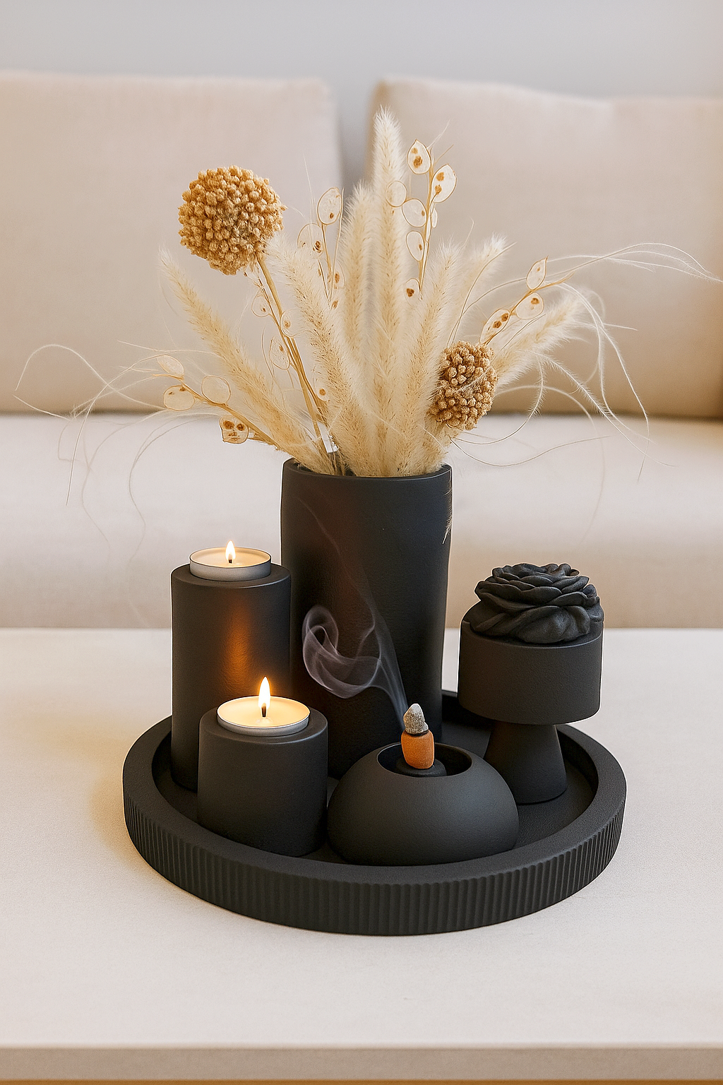 این ست به انتخاب عالی برای روی میز ناهارخوری ، میز جلو مبلی ، میز کار ، میز تلویزیون ،شلف ، پا تختی و هر فضای خالی از خونه ی شماست. انقدر لوکس و پینترستی که با هر فضا و رنگی هم ست میشه. قطر سینی 27 سانت