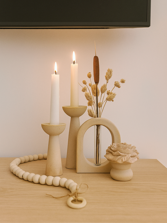 ترکیب گلجا و جا شمعی کوتاه و بلند یه همچین دکور قشنگی ب خونت میده